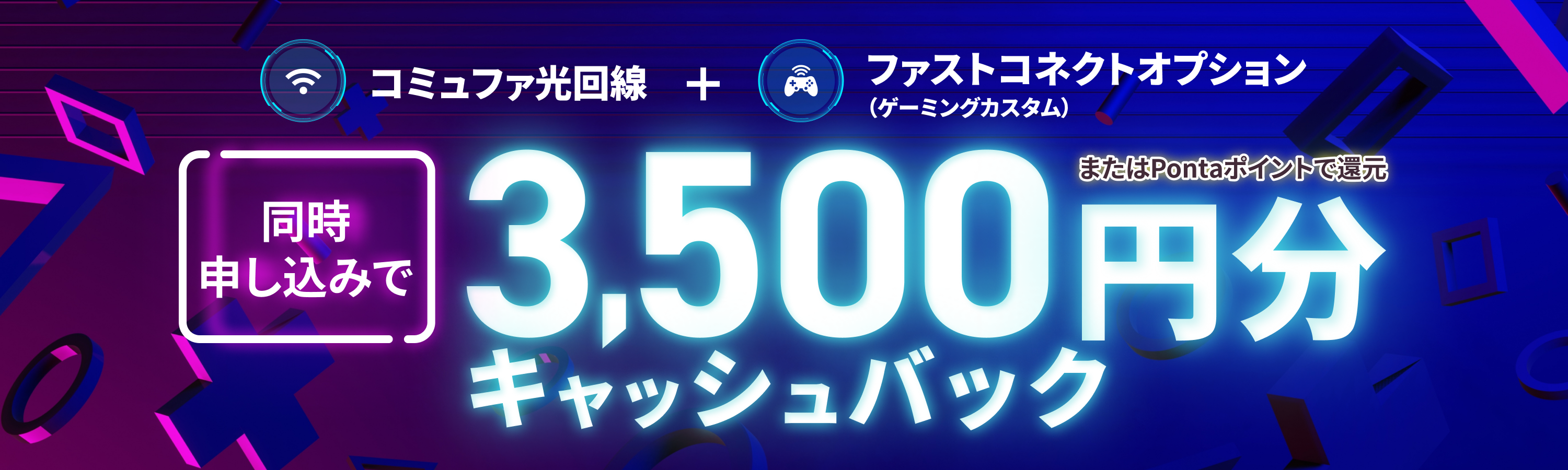 適用条件/還元条件を満たしたお客さまへ3,500円分をキャッシュバック又はPontaポイントで還元いたします。