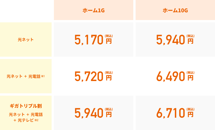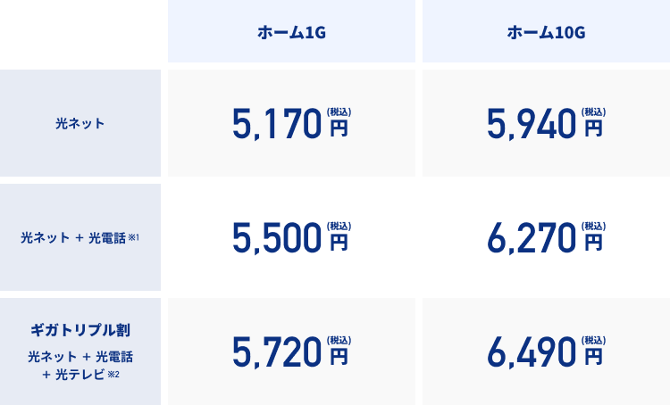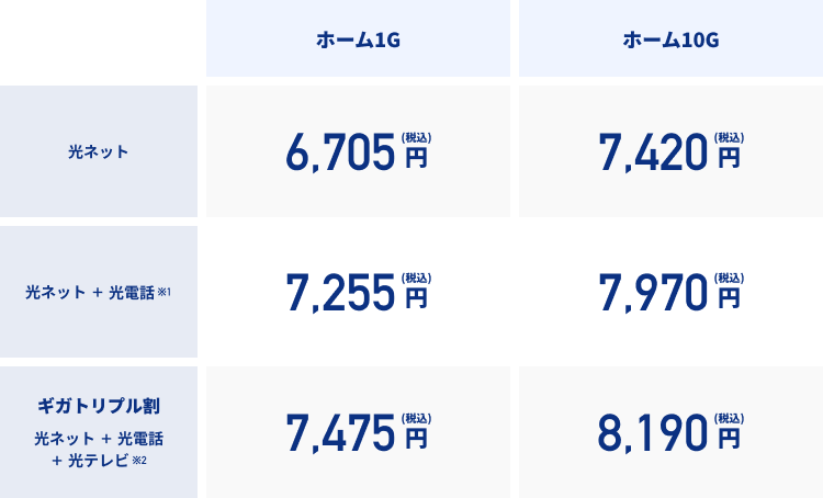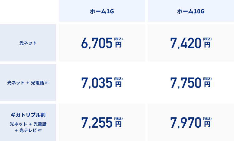 光ネット+光電話、光ネット+光電話+光テレビの1年目の料金額は「光電話特別割引キャンペーン」適用時の月額料金となります。