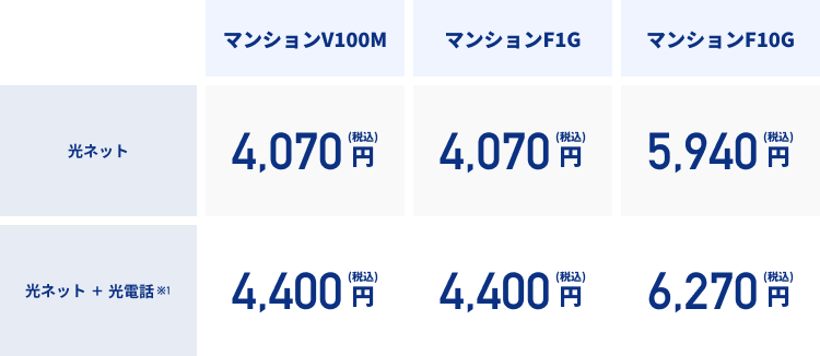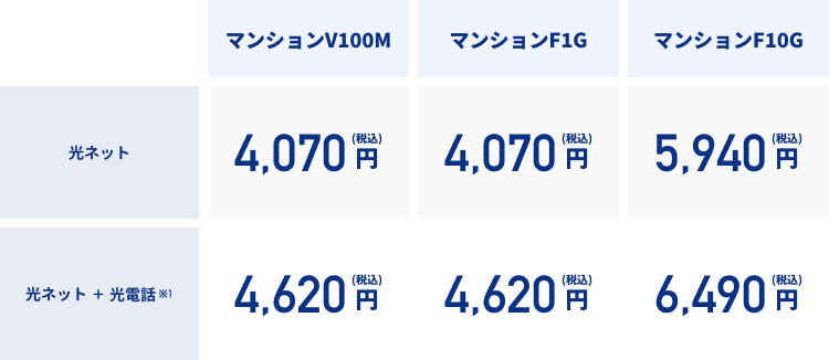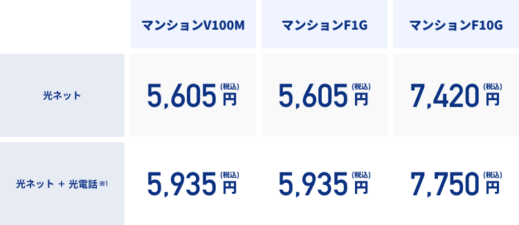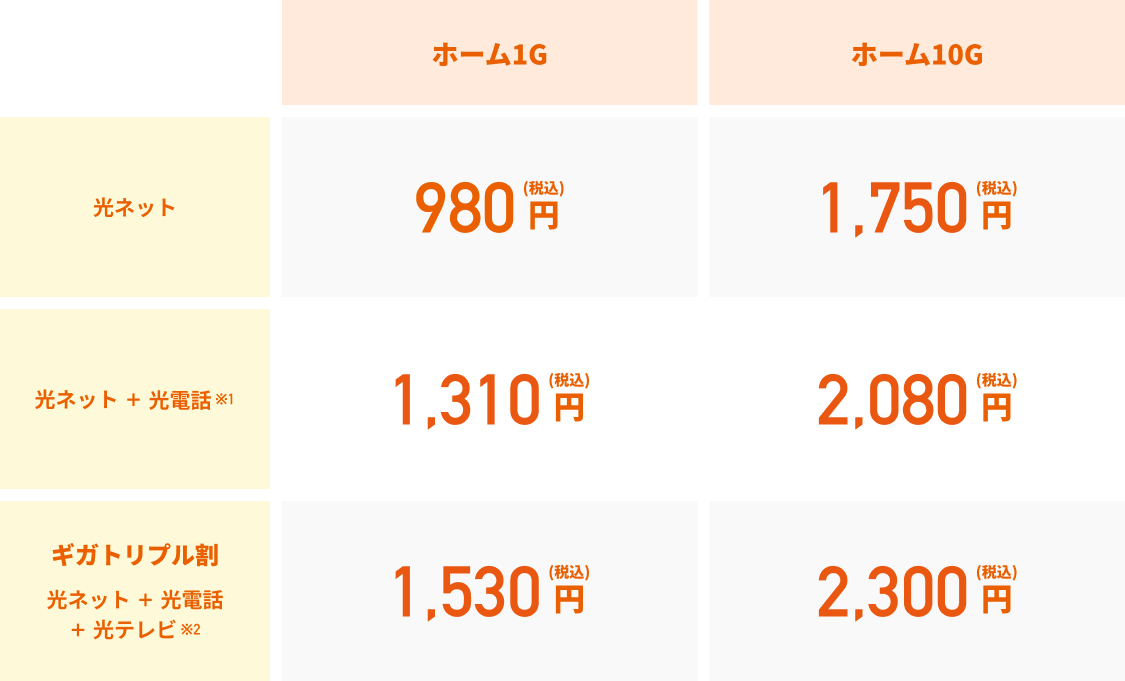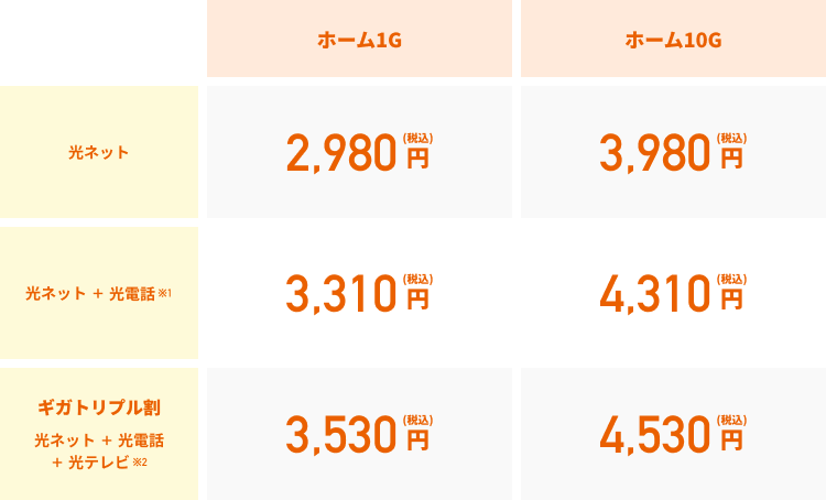 光ネット+光電話の1年目の料金額は「光電話特別割引キャンペーン」適用時の月額料金となります。