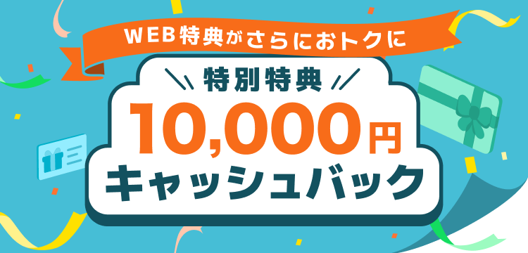 | 特典内容 | 適用条件を満たしたお客さまへ10,000円キャッシュバックいたします。 | |